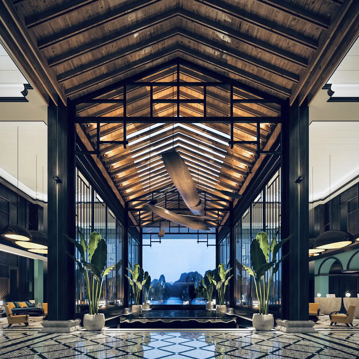Khách sạn 5 sao Tuan Chau Treasure Hotel được thiết kế như một bảo tàng sưu tập kỷ vật kể về câu chuyện lịch sử hình thành hòn đảo, gắn liền với những bước đi của doanh nhân Đào Hồng Tuyển. Điểm nhấn trong các không gian nội thất lấy cảm hứng từ hình tượng con tàu không số được đặt tại sảnh chính, những tấm bản đồ hình thành hòn đảo qua thời gian trong phòng lounge, hay bộ sưu tập những chiếc xe cổ gắn liền với doanh nhân ngay tại sảnh ballroom. Phong cách kiến trúc được thiết kế với định hướng Tonkin đương đại, là sự pha trộn giữa kiến trúc Tinh hoa Bắc Bộ với xu hướng thiết kế hiện đại.